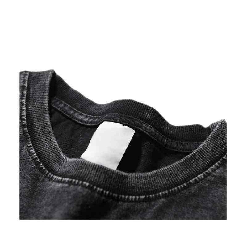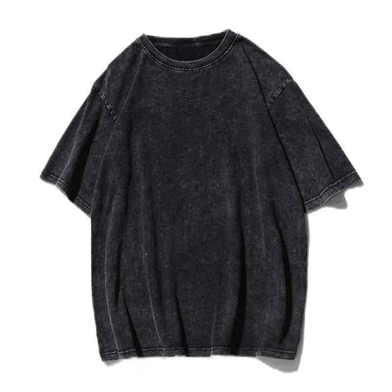 เสื้อยืดคอตตอน 100% สไตล์เรโทร ทรงไหล่เล็ก แขนสั้น ผ้าหนา แบบดิสเทรส