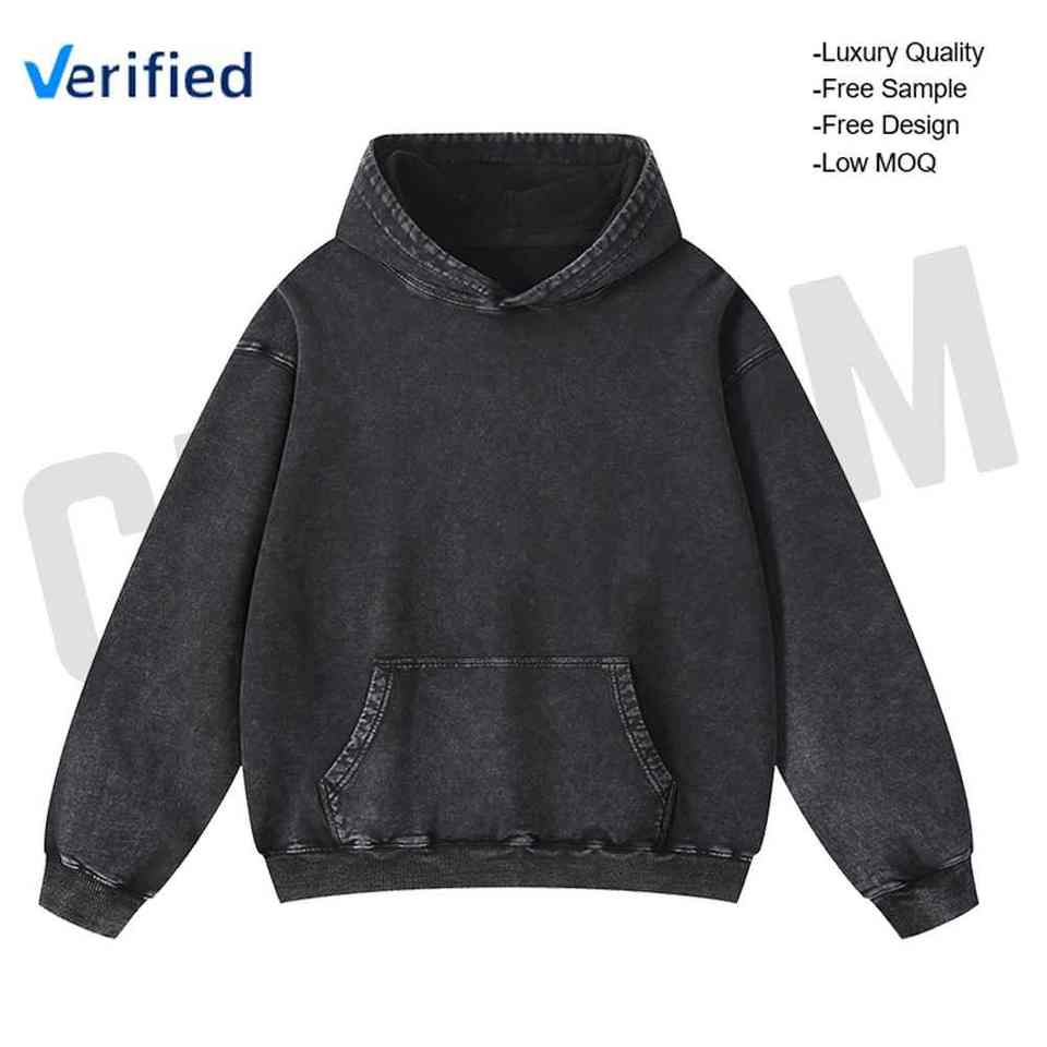 เสื้อฮู้ดซักกรดแบบวินเทจผ้าฝรั่งเศสเทอร์รี่มีฮู้ดโอเวอร์ไซส์