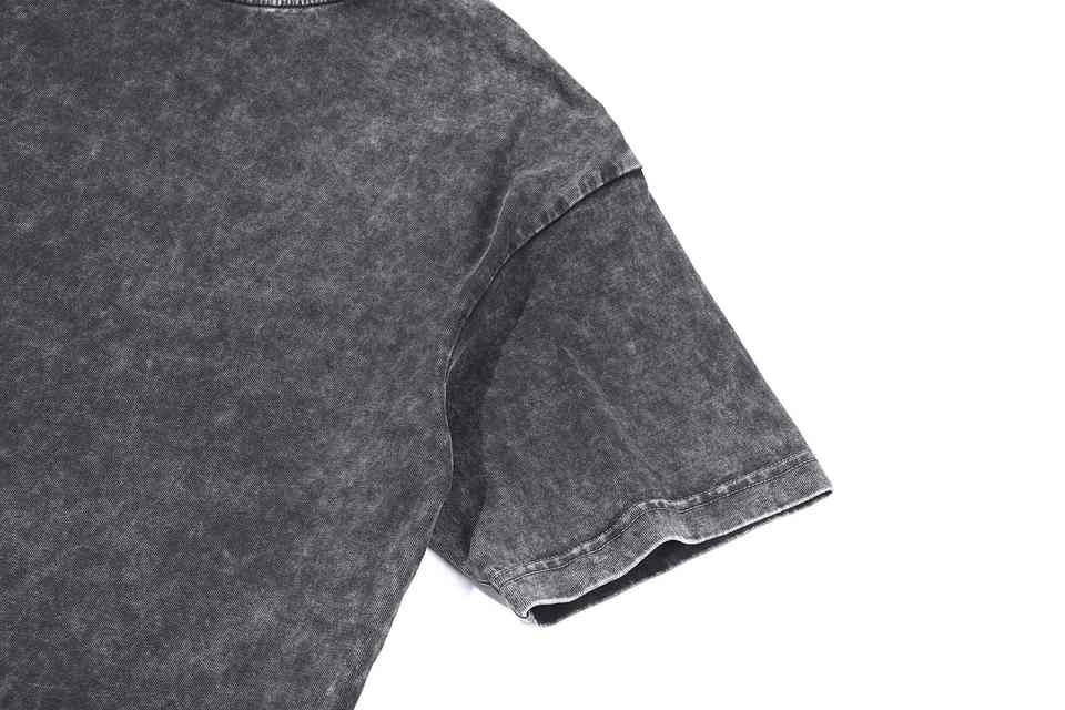เสื้อยืดผ้าฝ้ายสไตล์วินเทจซักด้วยกรดสำหรับ100% หิมะตามสั่ง