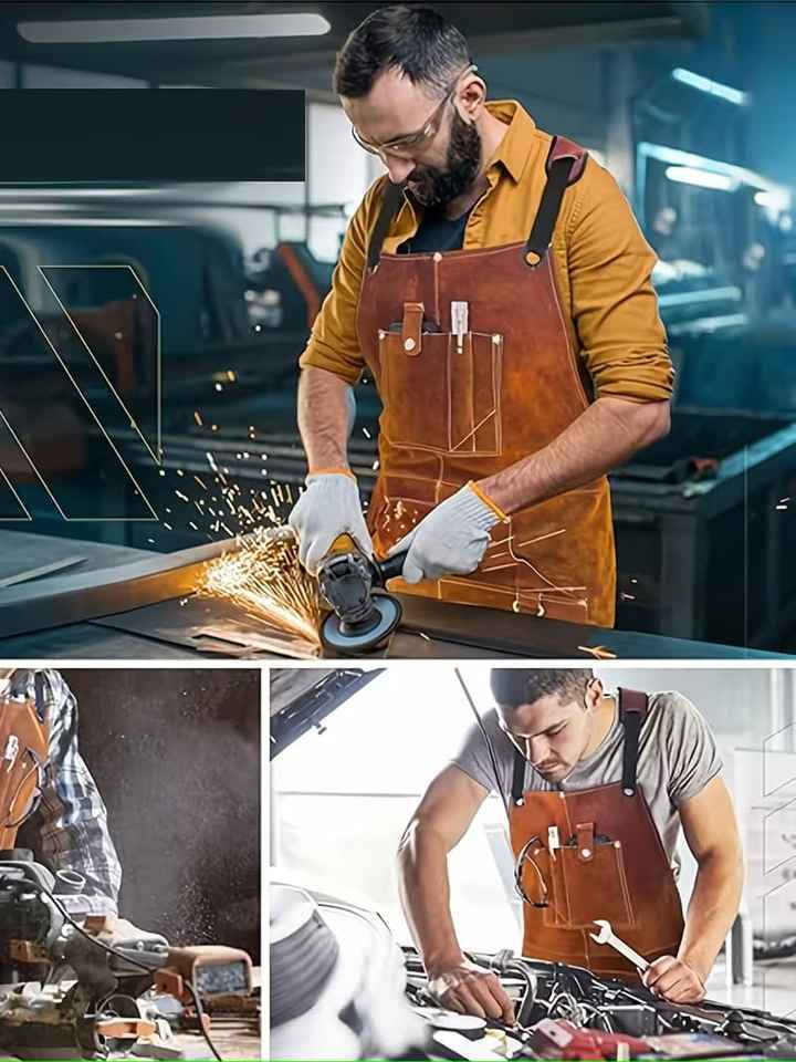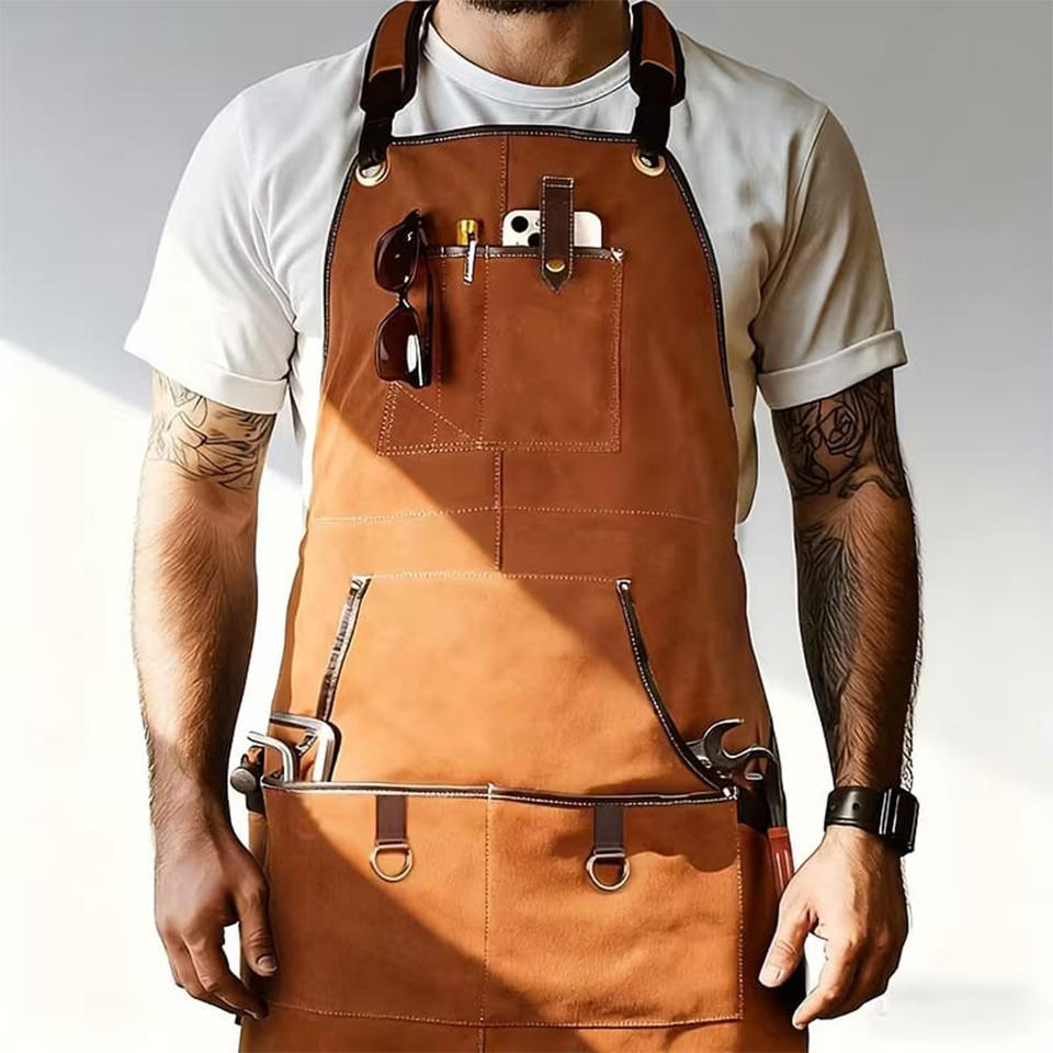 ผ้ากันเปื้อนหนังวัวคุณภาพสูงแบบสั่งทำพิเศษ สำหรับงานซ่อมบำรุง งานปิ้งย่าง และงานไม้