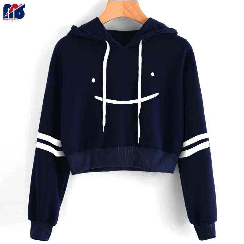 เสื้อฮู้ดดี้ครอปแขนยาวลายทางสไตล์ลำลองแบบสวมหัว รุ่น Dream Merch