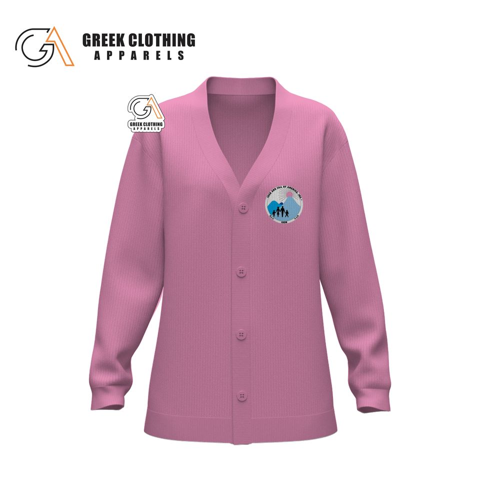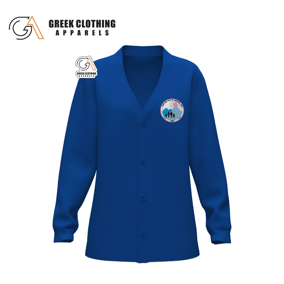 เสื้อคาร์ดิแกนแบบวีเนคสำหรับผู้หญิง ลายแจ็คแอนด์จิล ออฟ อเมริกา ผ้าอะคริลิก ลายทางแบบวาร์ซิตี้ ปักลาย สำหรับชมรมนักศึกษา