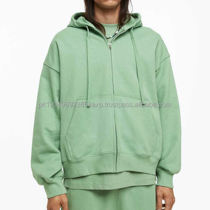 เสื้อฮู้ดดี้ผู้ชายแบบซิป ผ้าฝ้าย ทรงหลวม ไหล่ตก พิมพ์ลายพัฟฟ์ ไซส์ใหญ่ น้ำหนักมาก สไตล์สตรีทแวร์ สำหรับฉัน