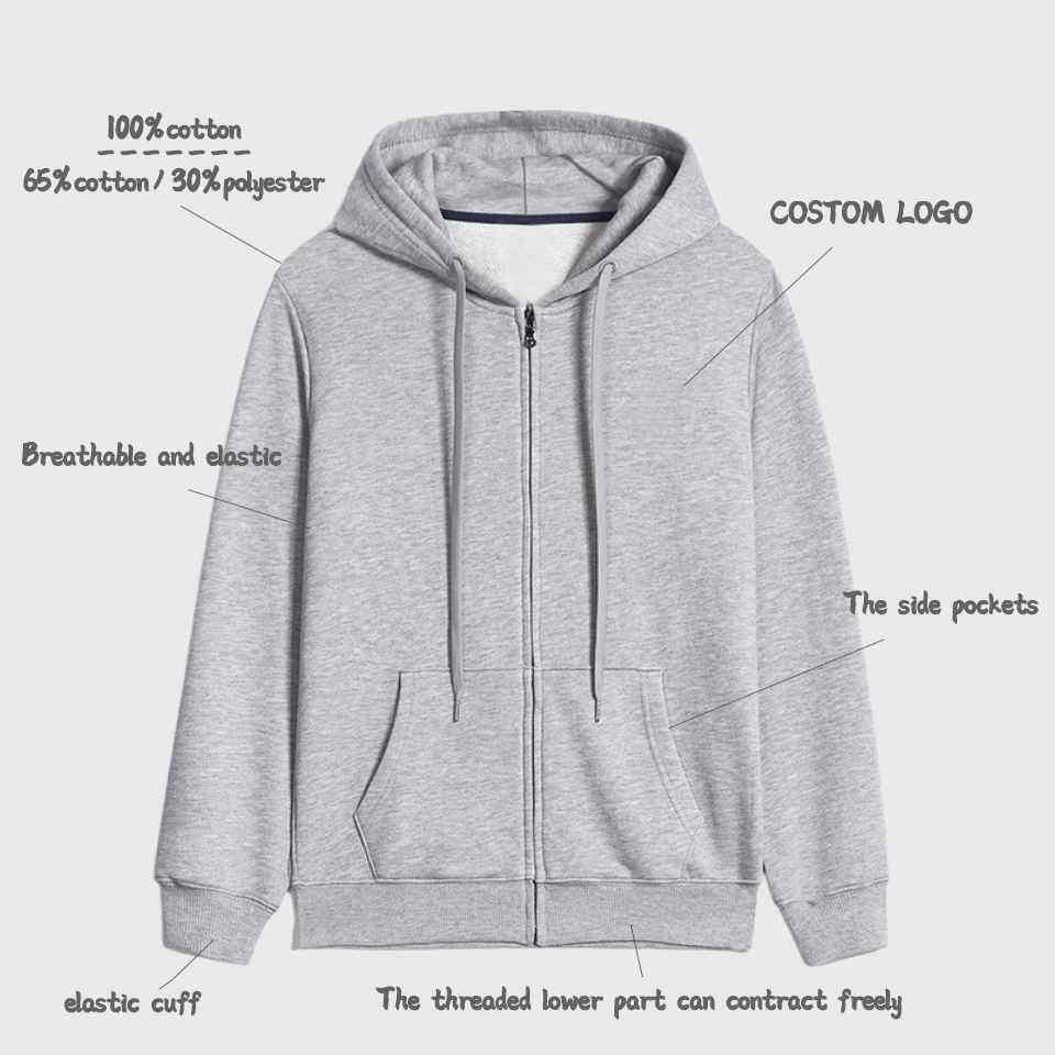 เสื้อกันหนาวมีฮู้ดผ้าฝ้ายเทอร์รี่สีพื้นมีซิปโอเวอร์ไซส์กำหนดได้เอง