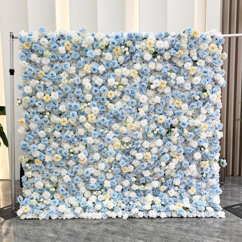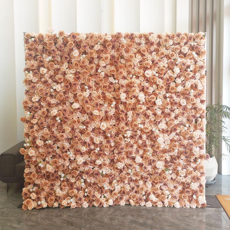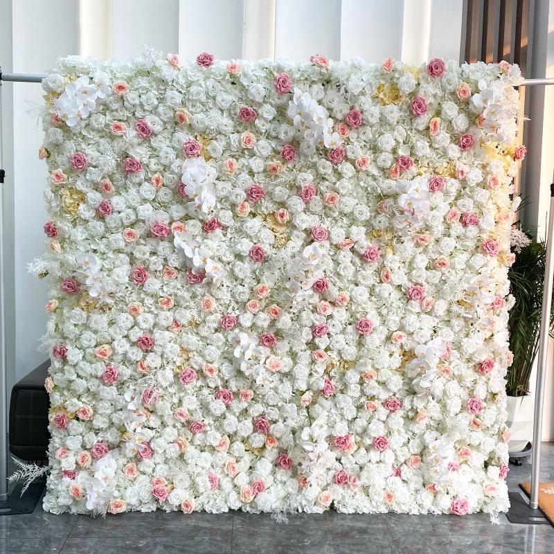 ผนังดอกไม้ประดิษฐ์สไตล์ยุโรปแบบกำหนดเอง ขนาด 8 ฟุต x 8 ฟุต ฉากหลัง 5 มิติ 3 มิติ พร้อมดอกบัว สำหรับตกแต่งงานแต่งงานและงานปาร์ตี้คริสต์มาส
