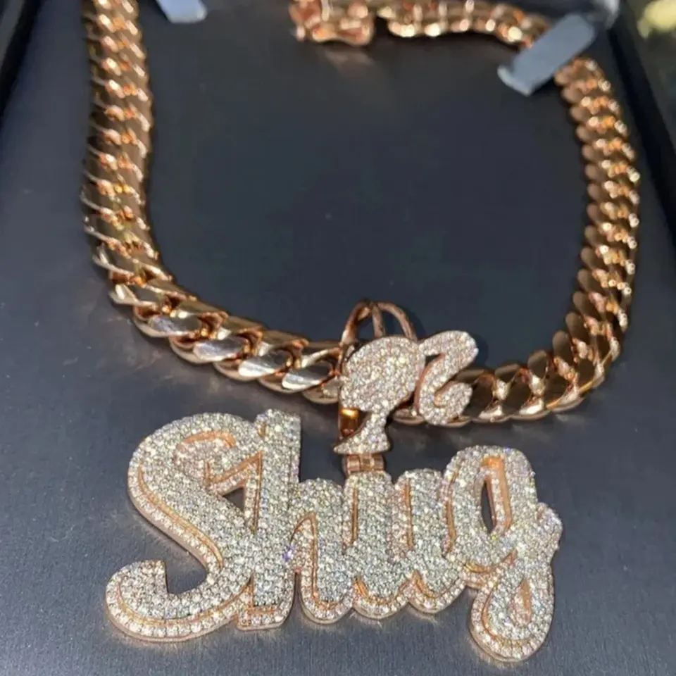 จี้เพชรโมอิสซาไนต์แบบกำหนดเอง VVS1 ตัวอักษรขนาดเล็กแบบเขียนด้วยลายมือ ประดับเพชรเต็มตัว เงินแท้ 925 เครื่องประดับฮิปฮอป ของขวัญวันเกิดสำหรับผู้หญิง