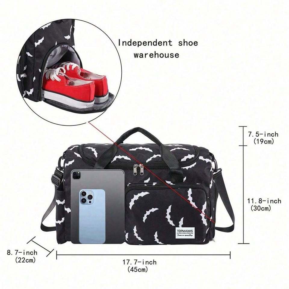 กระเป๋าเดินทางทรงดัฟเฟิลสำหรับออกกำลังกายกันน้ำมีช่องใส่รองเท้ากระเป๋าเล่นกีฬาพิมพ์ลายค้างคาวออกแบบได้ตามต้องการ