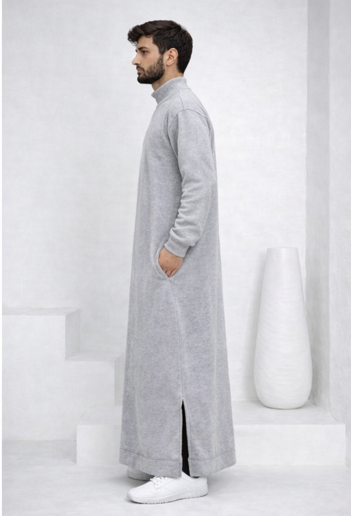 เสื้อคลุมแบบอาหรับดูไบอิสลาม คอเต่า ผ้าฟลีซ สำหรับฤดูหนาว สำหรับผู้ชายมุสลิม ผ้าคุณภาพดี แบบทาวาบ ผ้าจุบบะฮ์แบบอาหรับ ดีไซน์ทันสมัย