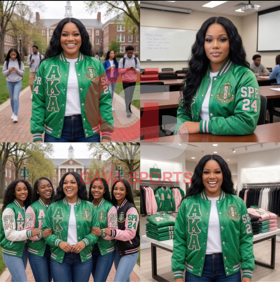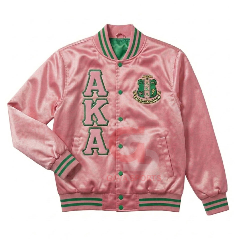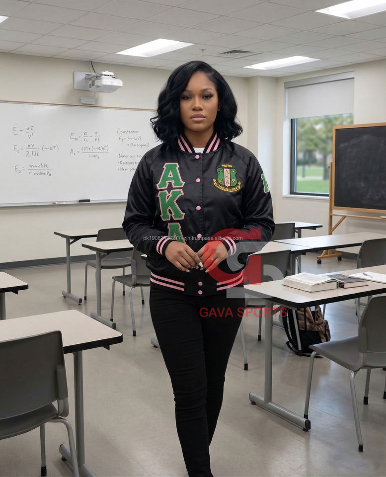 เสื้อแจ็คเก็ตเบสบอลแบบมีรูระบายอากาศสั่งทำพิเศษสำหรับผู้หญิง หรือเสื้อแจ็คเก็ตซาตินกรีกแบบสั่งทำพิเศษสำหรับผู้หญิง และเสื้อแจ็คเก็ตบอมเบอร์ปักลายสีชมพูแบบสั้นสำหรับผู้หญิง