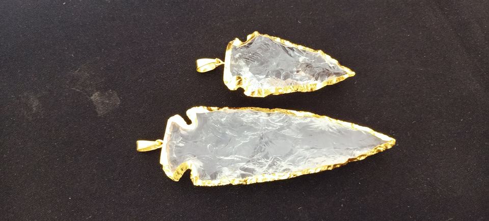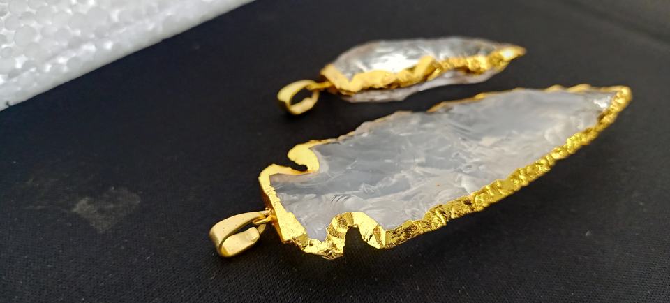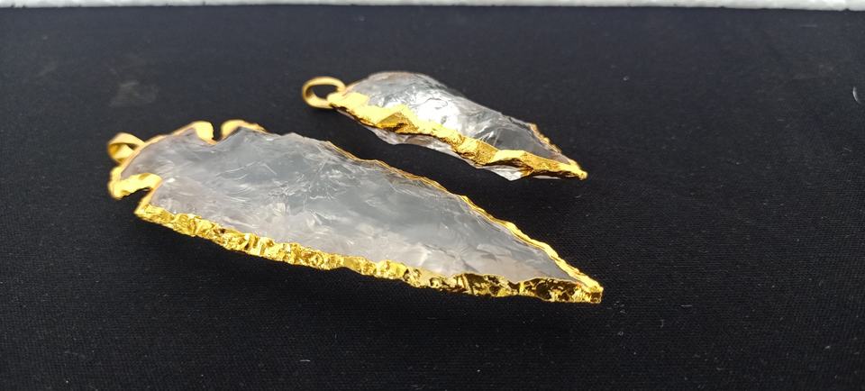 Custom Crystal Quartz Agate Arrowheads with Gold Edging Ideal for Jewelry Designer for Resale