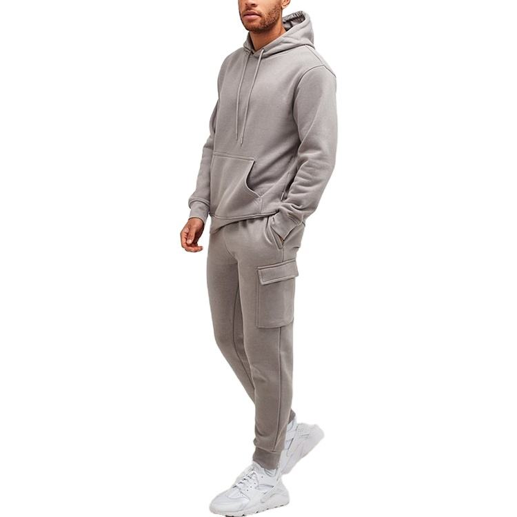 Custom Logo Essentials Men's Winter Cotton Overhead Fleece Sweatsuit Tracksuit Brand Label Hoodie and Sweatpants Set