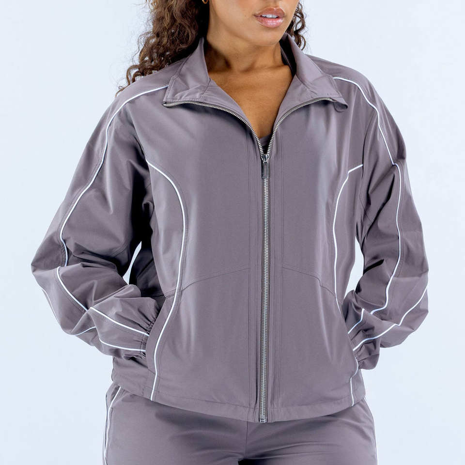 เสื้อแจ็คเก็ตและกางเกงวอร์มลายทรัฟเฟิลพร้อมโลโก้แบบกำหนดเอง ชุดวอร์มสองชิ้นสำหรับผู้หญิง ชุดกีฬาระบายอากาศ ชุดวอร์มผู้หญิง