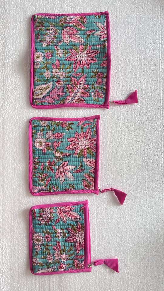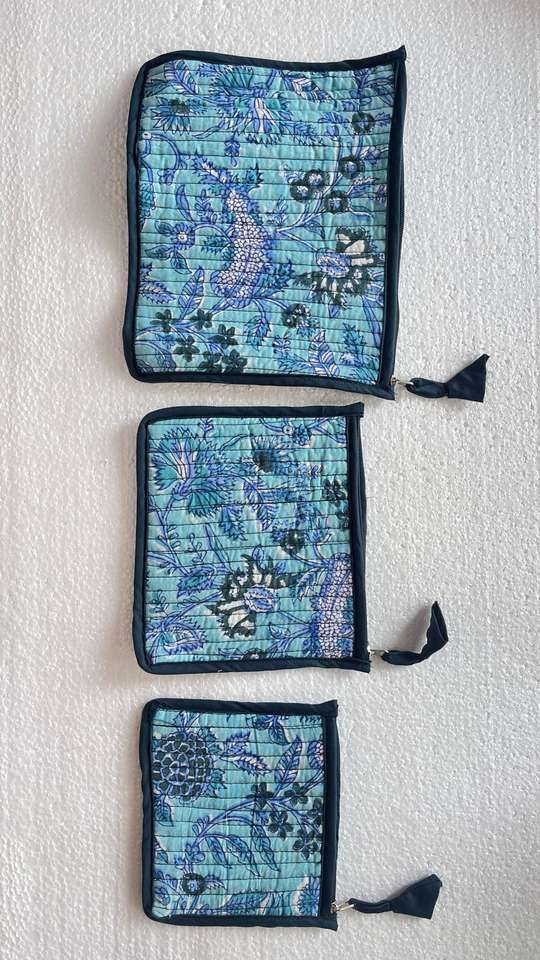 กระเป๋าผ้าควิลท์ผ้าฝ้ายพิมพ์ลายเป็นชุด3ชิ้นเหมาะสำหรับร้านขายในบ้าน