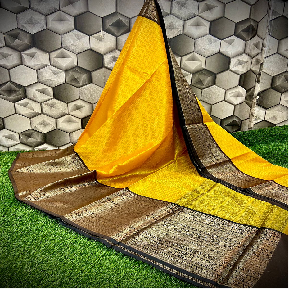 Sarees ผ้าไหมที่ทำจากผ้าไหมบริสุทธิ์ที่เหมาะสำหรับการทำเสื้อผ้าของผู้หญิงในสีทองและสีดำ