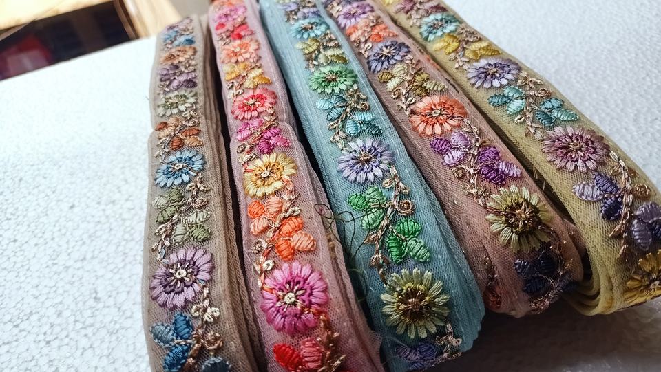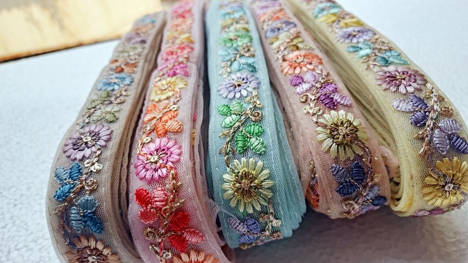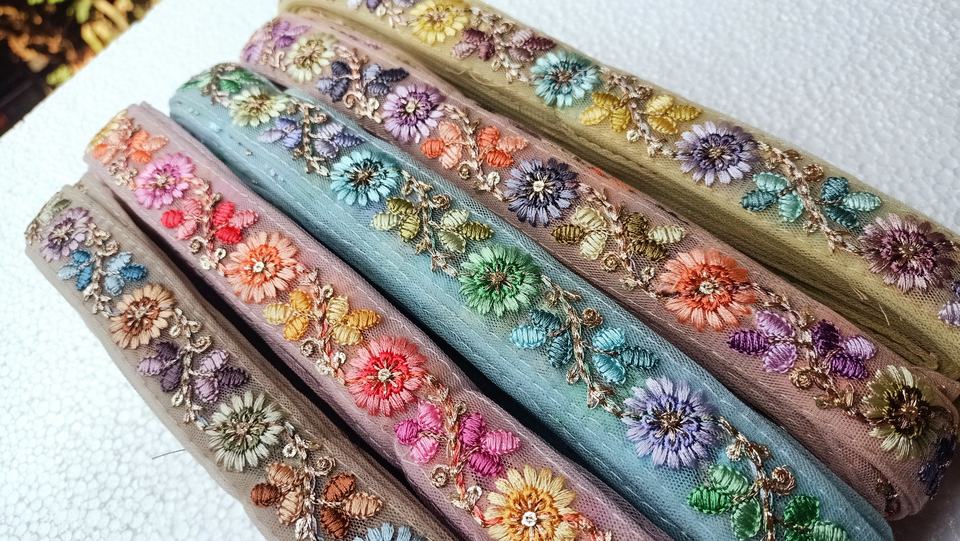 ริบบิ้นผ้าไหมคอตตอน 100% ออกแบบลายดอกไม้ ปักด้วยเครื่องจักร เป็นมิตรต่อสิ่งแวดล้อม ยั่งยืนได้ ความกว้าง 1-1/2 นิ้ว สีตามสั่ง