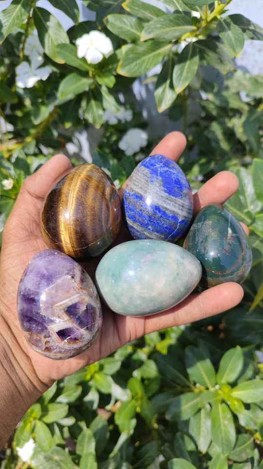 อัญมณีอาเกตไข่ขนาด5ซม. ทำขึ้นเองทำจาก Lapiz Lazuli เสือตาและอเมทิสต์หินจีนรักทาวเวอร์