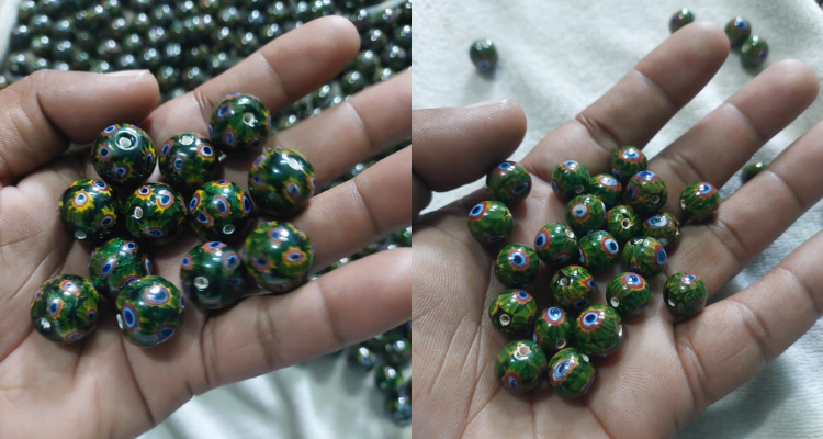 ลูกปัดแก้วทำเองในสีขาวและสีฟ้าเหมาะสำหรับร้านค้าลูกปัดและนักออกแบบเครื่องประดับ
