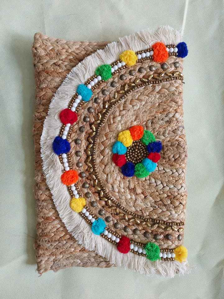 กระเป๋าสตางค์ปอกระเจาทำมือแบบสั่งทำ,ตกแต่งขอบด้วยลูกปัดหลากสีและการเดินทางด้วยผ้าฝ้ายสำหรับร้านเครื่องประดับแฟชั่นและร้านกระเป๋า