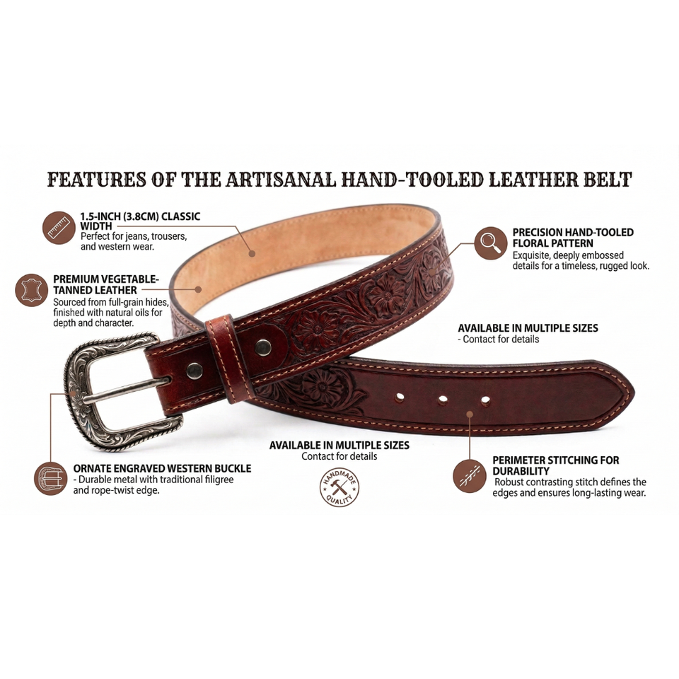 เข็มขัดหนังแท้ลายดอกไม้และลายตะวันตกแบบทำมือ งานฝีมือประณีต ทนทาน ขายส่ง