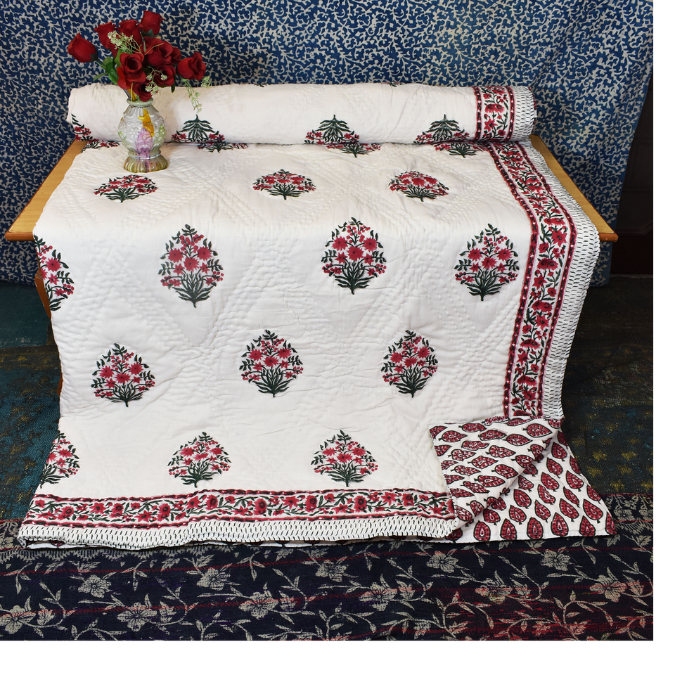 ผ้านวมผ้าฝ้ายพิมพ์ลายบล็อกไม้ทํามือแบบกําหนดเองเหมาะสําหรับขายต่อโดยสิ่งทอที่บ้านและร้านตกแต่งบ้าน