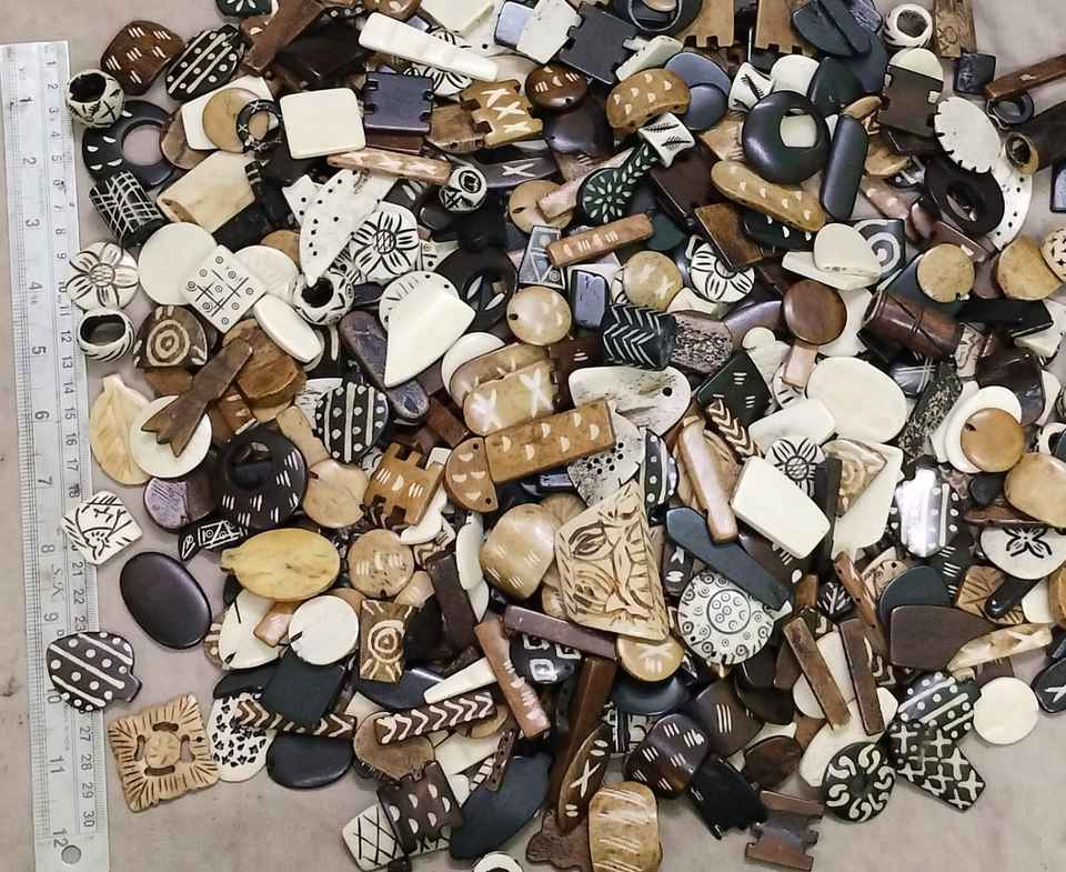 custom made in black coloured hand carved mixed bone beads in assorted shapes and sizes and dyed colors for jewelry designers