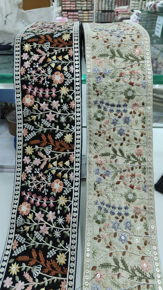 ผ้าลูกไม้ปักด้วยเครื่องจักรความกว้างขนาดใหญ่ออกแบบลายดอกไม้สีดำและสีขาวสำหรับเสื้อผ้าและชุดแต่งงานตามสั่ง