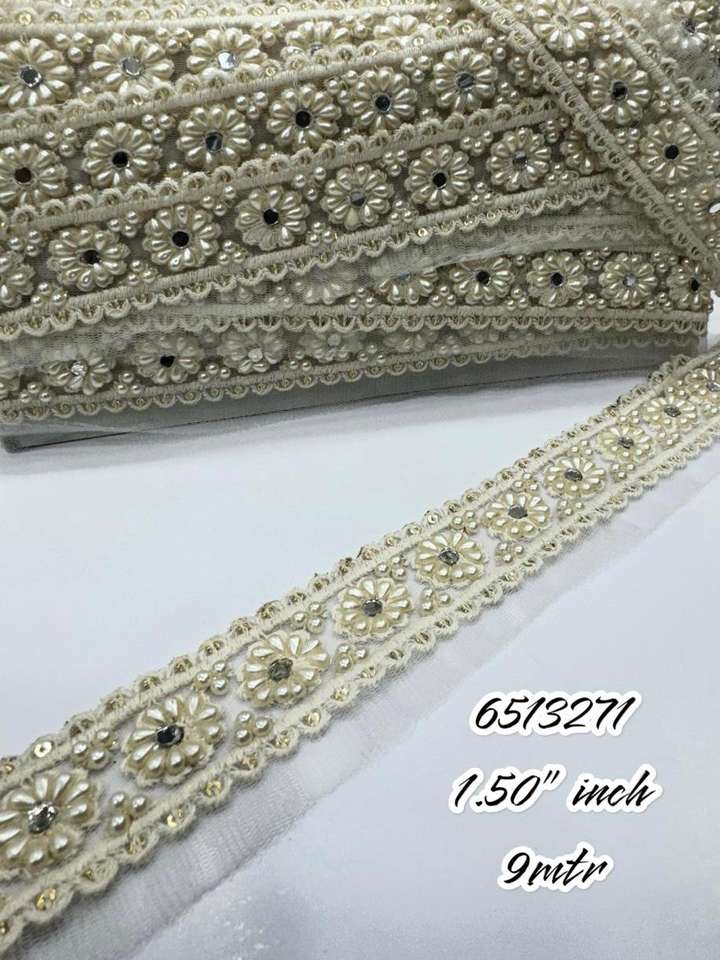 เครื่องปักผ้าลูกไม้สำหรับชุดแต่งงานและเสื้อผ้าสตรีมีหลายดีไซน์ลายปักด้วยไข่มุกสีขาว