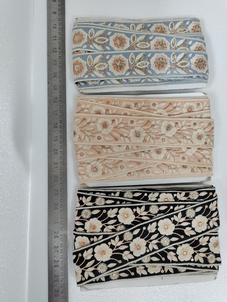 เครื่องปักริบบิ้นและผ้าลูกไม้ลายดอกไม้สำหรับชุดแต่งงานและเสื้อผ้ากว้าง2.5นิ้วทำตามสั่ง