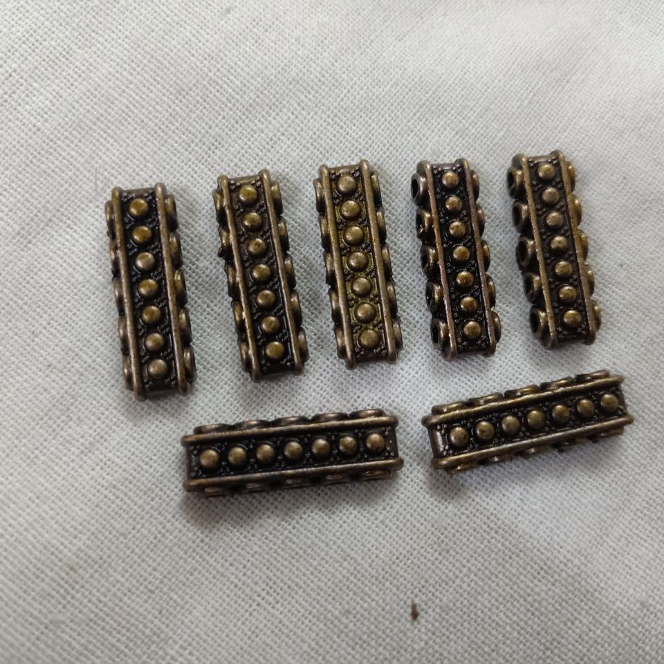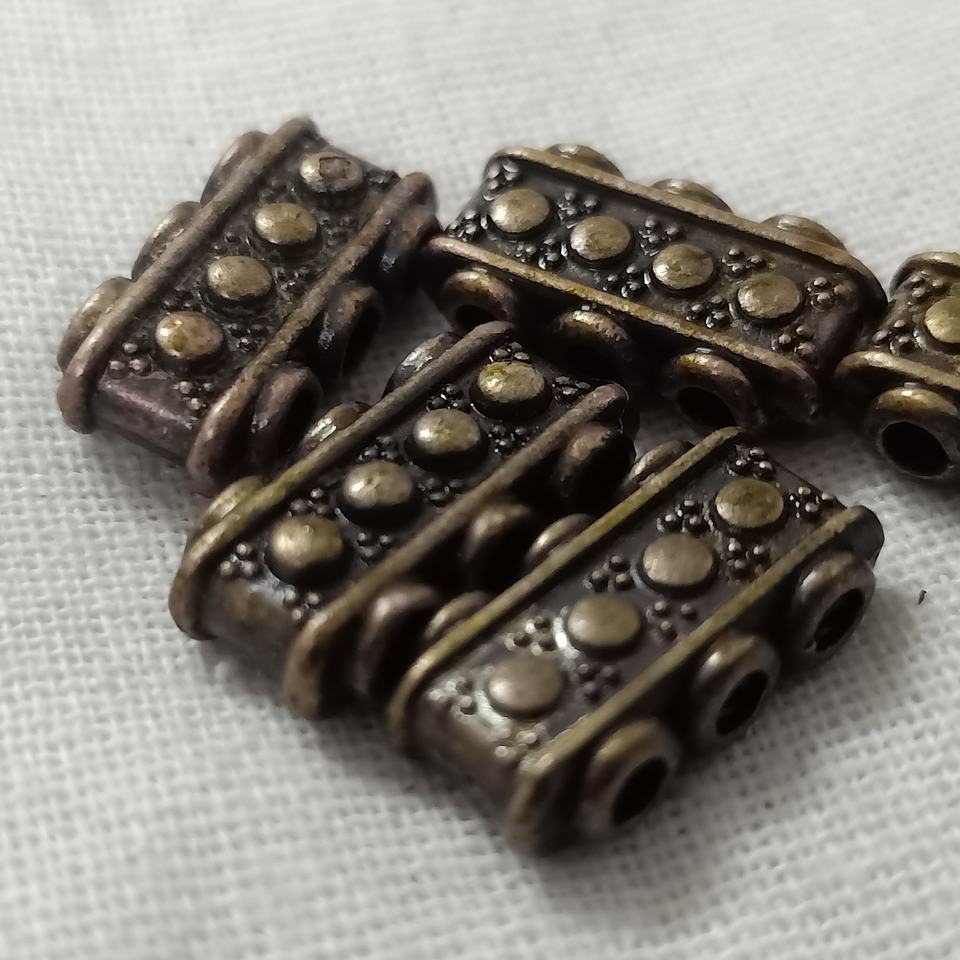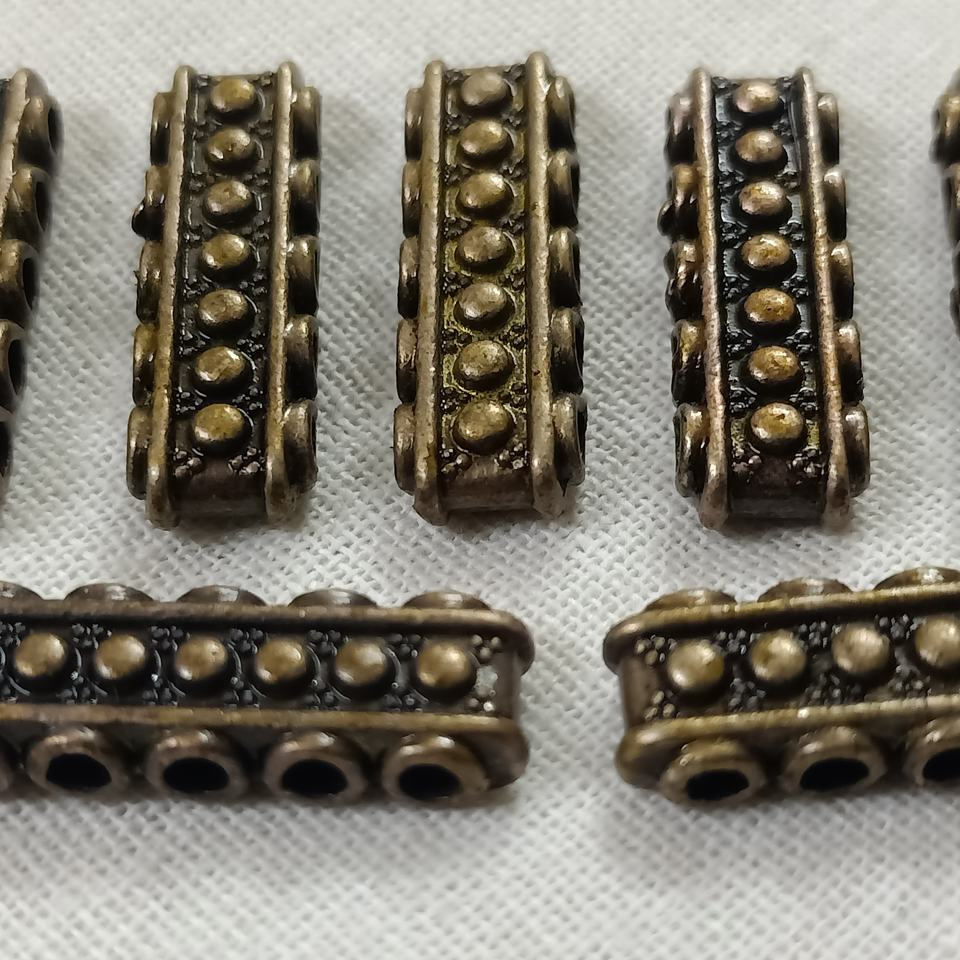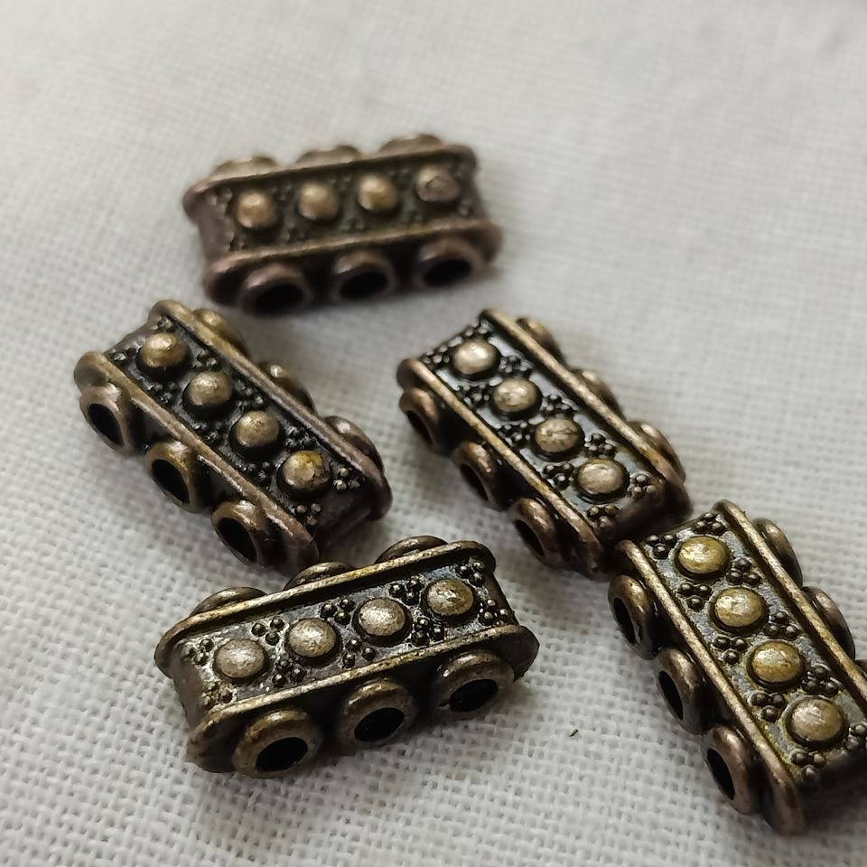 ลูกปัดทองแดงผสมทำมือแบบสั่งทำพิเศษ รีไซเคิล เป็นมิตรกับสิ่งแวดล้อม ดูเก่าแบบโบราณ มี 3 หรือ 4 รู สำหรับนักออกแบบเครื่องประดับ