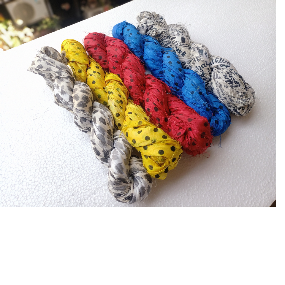 เส้นด้ายไหมพิมพ์ลายทำจากวัสดุงานฝีมือที่รีไซเคิลพร้อมลายจุดเล็กๆพิมพ์ในหนังสือพิมพ์เสือดาว