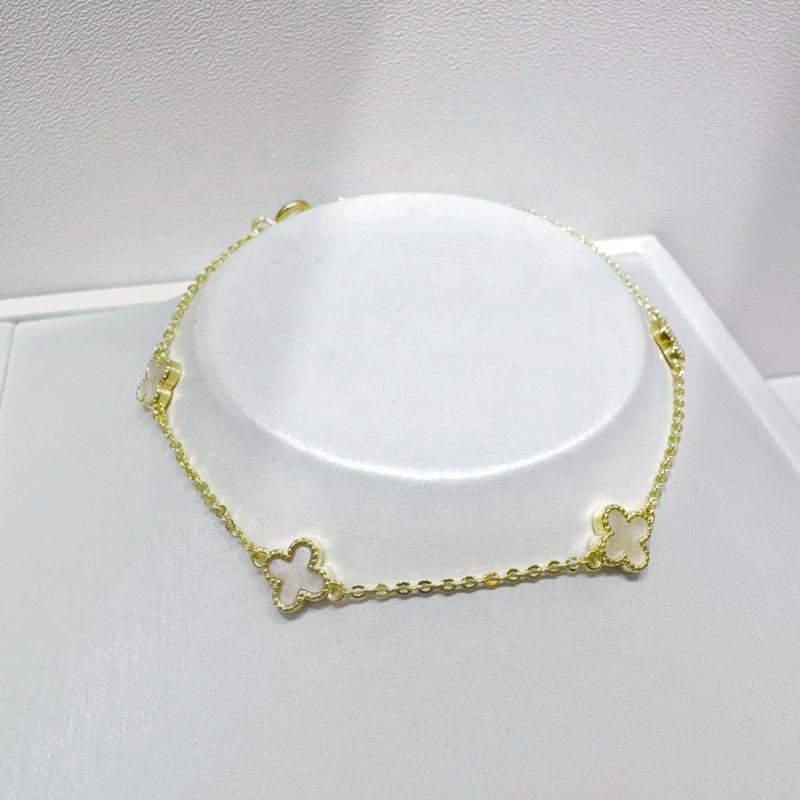 กำไลข้อมือเงินแท้ 925 แบบเรียบง่าย สไตล์เพื่อนซี้ ซ้อนกันได้ แฟชั่นผู้หญิง ชุบทอง ประดับดอกไม้และใบโคลเวอร์ สำหรับสาวๆ
