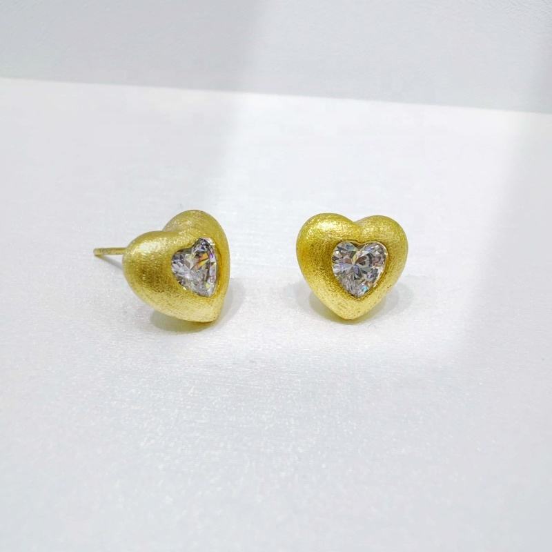 ต่างหูเงินแท้ 925 รูปหัวใจและดาว ประดับด้วยหินธรรมชาติ สำหรับผู้หญิงและเด็ก ชุบทอง 18k ดีไซน์เรขาคณิต