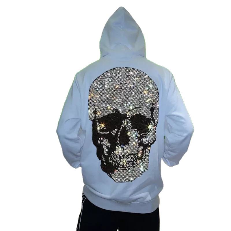 เสื้อฮู้ดพิมพ์ลายพลอยเทียมสำหรับผู้ชายเสื้อฮู้ดโลโก้พลอยเทียมขนาดใหญ่สำหรับผู้ชาย