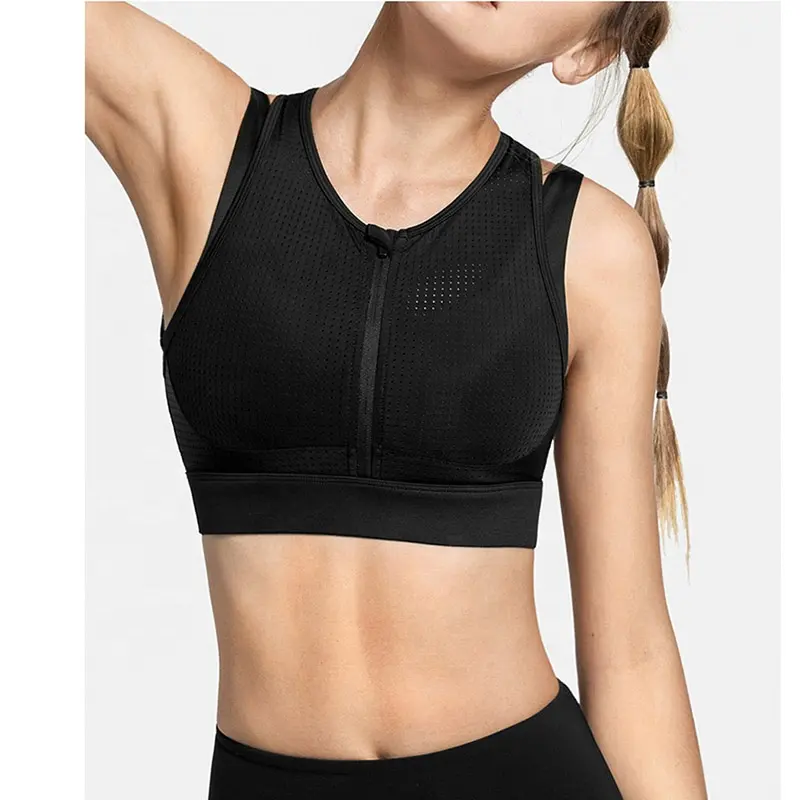 Custom Women's Breathable Anti-Bacterial Eco-Friendly Sports Bra with Front Zipper for Yoga Gym Fitness Wear Plus Size Included