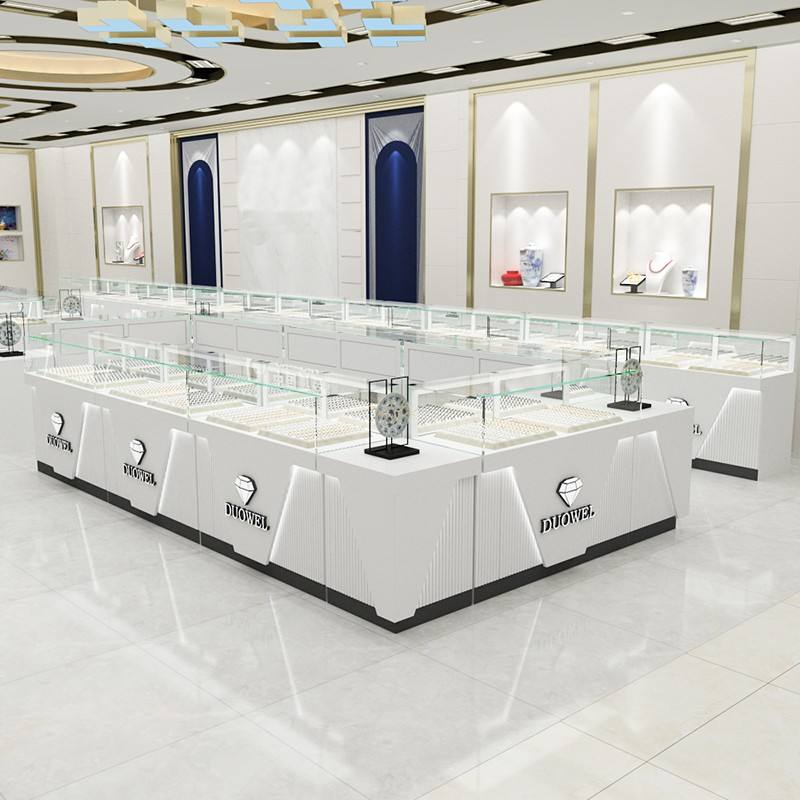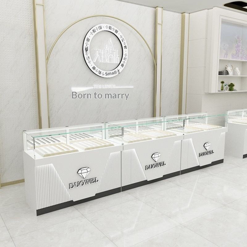 ตู้โชว์เครื่องประดับสั่งทำพิเศษ สีขาว/ดำ กระจกโชว์นาฬิกา ตู้โชว์เพชร หยก รุ่น V-01 แบบจีน สำหรับห้างสรรพสินค้า