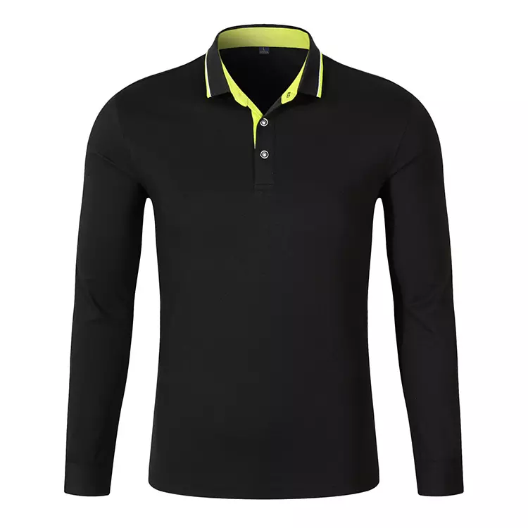 เสื้อโปโลแขนยาวสำหรับผู้ชายผ้าคอตตอนลายปักโลโก้โปโลกันยับ