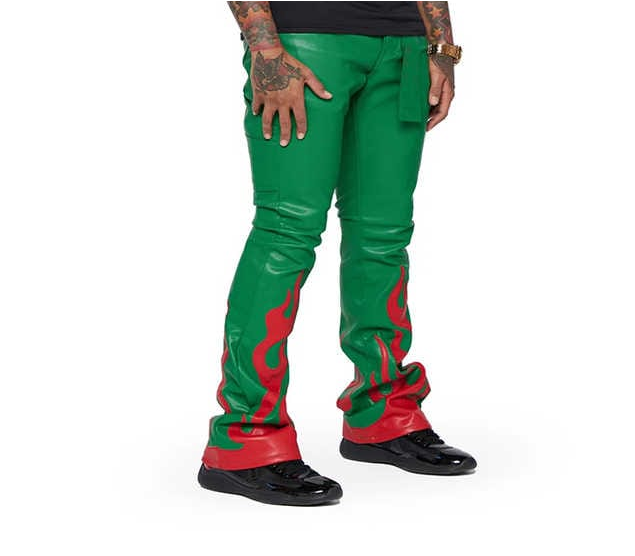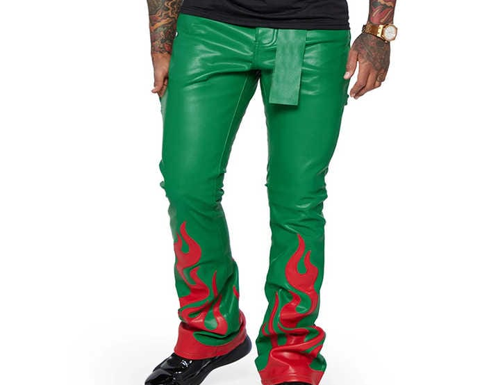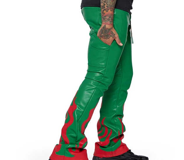 กางเกงหนังพียูสำหรับผู้ชายแบบสตรีทเครื่องแต่งกายแนวสตรีทงานเย็บปะติดเอวสูงแบบกำหนดเอง2025