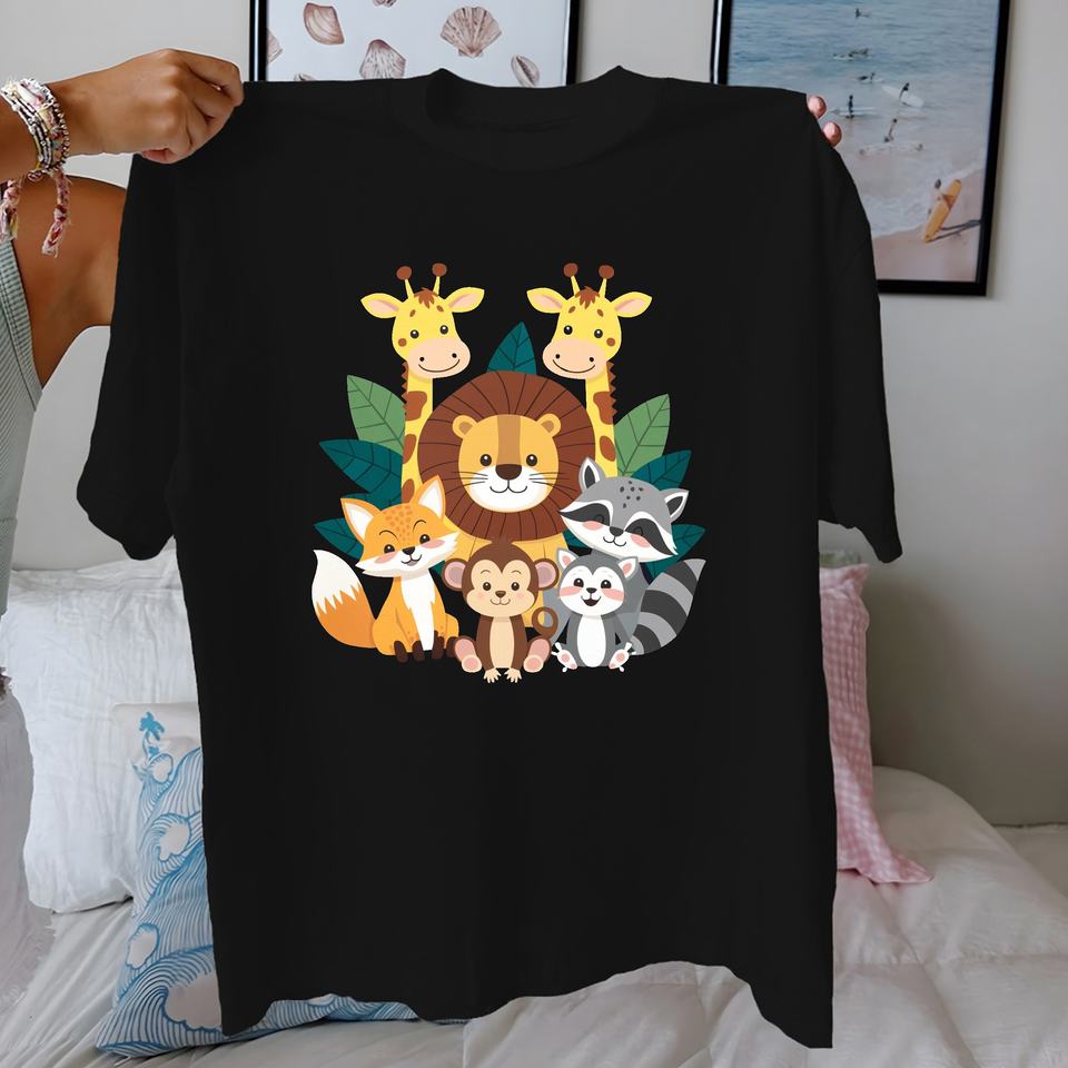 เสื้อยืดผ้าฝ้ายแท้ผู้หญิงลายการ์ตูนสัตว์น่ารักใส่สบาย