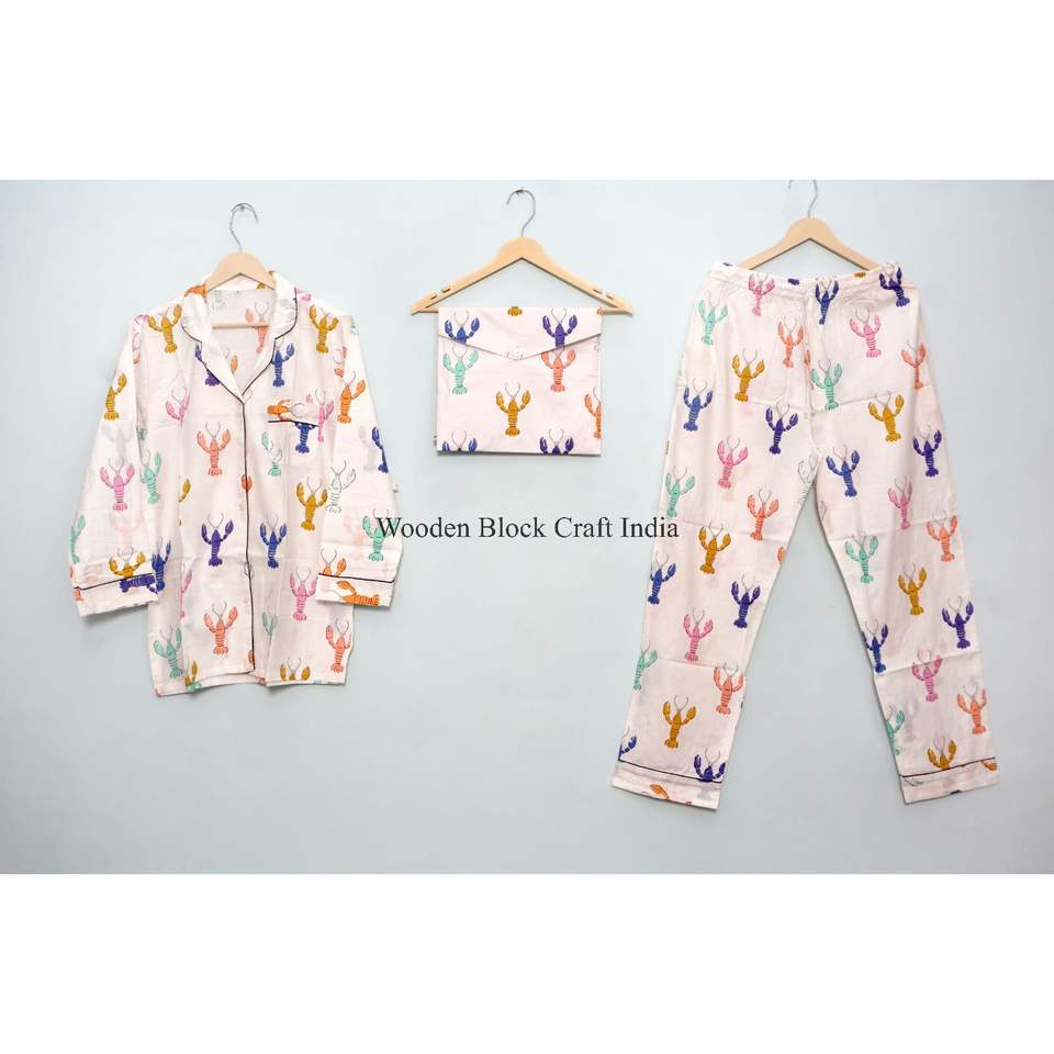 ชุดนอนฤดูร้อนลายพิมพ์แมงป่องน่ารัก 3 ชิ้น ผ้าฝ้าย ชุดนอนขายส่ง เสื้อถักนิตติ้งระบายอากาศ กางเกงขายาวสำหรับผู้หญิง