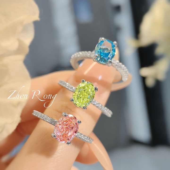Cz-sterling-silver-925-ring anillos redondos de moissanita En Plata de Ley 925สีชมพูทัวร์มาลีนโอปอล925แหวนเงินสเตอริง