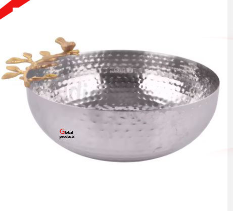 ชามสแตนเลสโลหะสีเงินสำหรับตกแต่งพร้อมดีไซน์ดอกไม้สีทองสำหรับร้านอาหารโรงแรมและบาร์