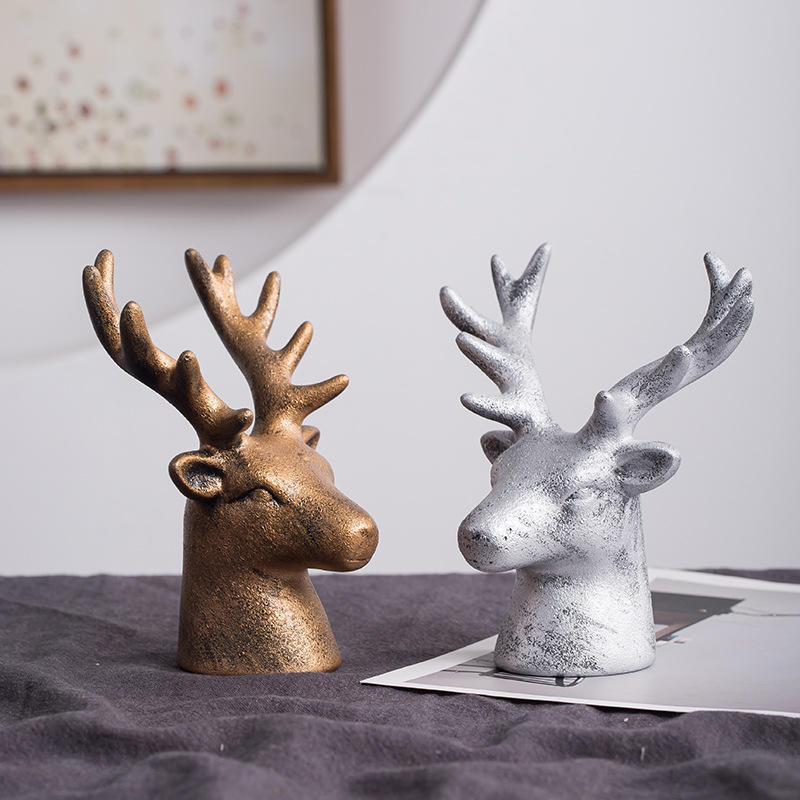 ของตกแต่งศิลปะรูปหัวกวาง สไตล์นอร์ดิก สำหรับตกแต่งตู้ไวน์ ตู้โชว์ทางเข้าเรียบง่าย ของตกแต่งบ้าน งานฝีมือ