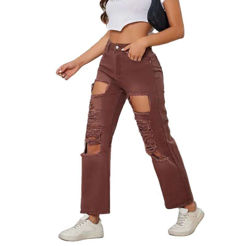 กางเกงยีนส์เอวกลางมีสไตล์สำหรับผู้หญิงทันสมัยกางเกงคาร์โก้แฟชั่นตามสั่ง