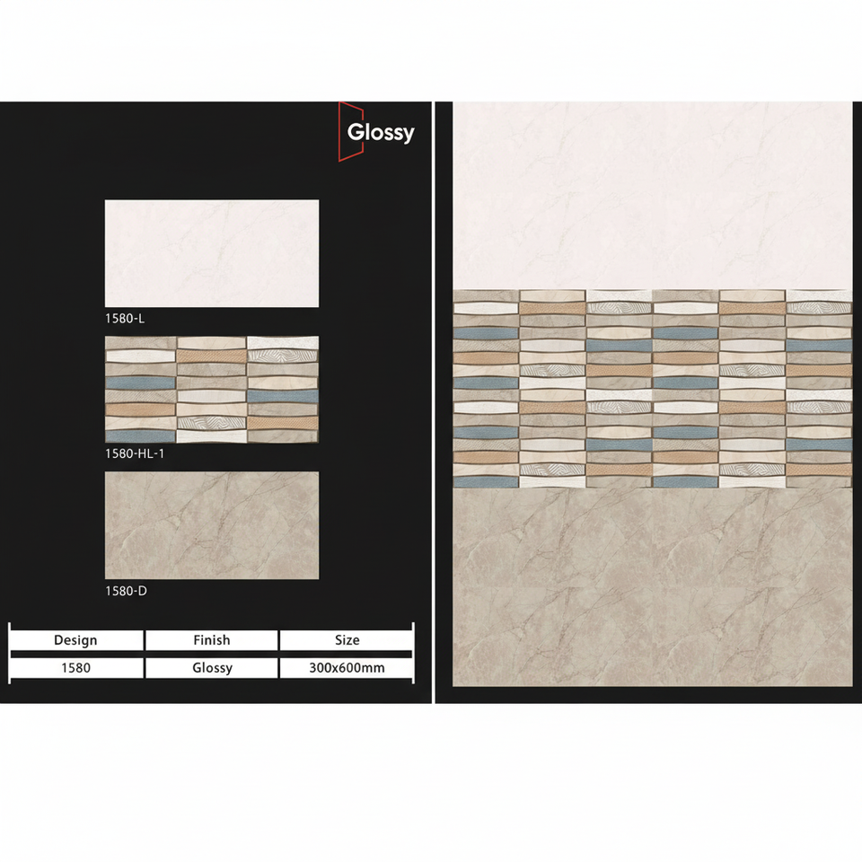 กระเบื้องบุผนังเซรามิกขนาด 300x600 มม. สำหรับห้องน้ำและห้องครัว ผิวมันเงา/ด้าน ลายแกะสลักแบบน้ำตาล ดีไซน์ตกแต่งผนังภายในสุดหรู