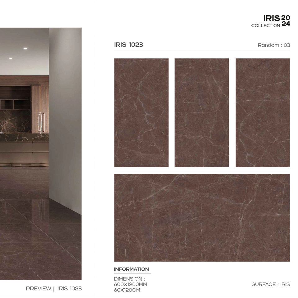 กระเบื้องพอร์ซเลนคอลเลคชั่นดีไซเนอร์ รุ่นไอริส ขนาด 60x120 ซม. 600x1200 มม. 24x48 นิ้ว สำหรับตกแต่งผนังและพื้นภายในอย่างมีสไตล์