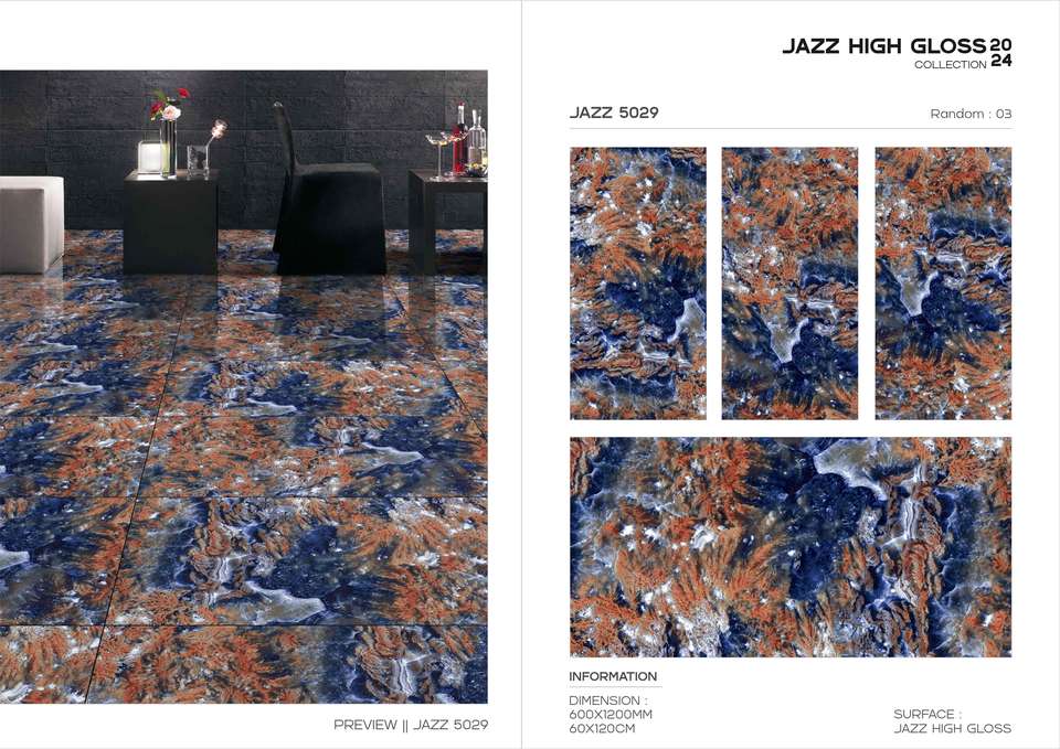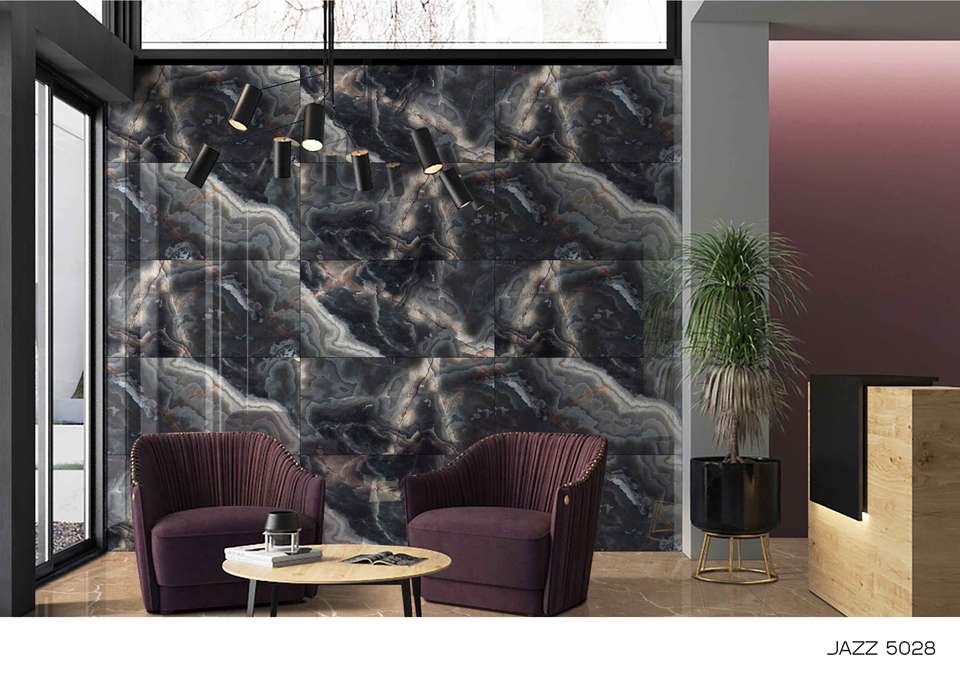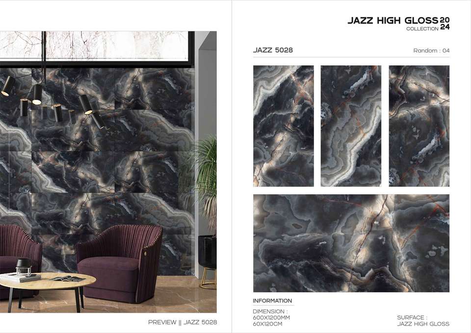 กระเบื้องพอร์ซเลนคอลเลคชั่นดีไซเนอร์ รุ่นแจ๊ส ผิวเงาสูง ขนาด 60x120 ซม. 600x1200 มม. 24x48 นิ้ว สำหรับตกแต่งภายในอย่างมีสไตล์