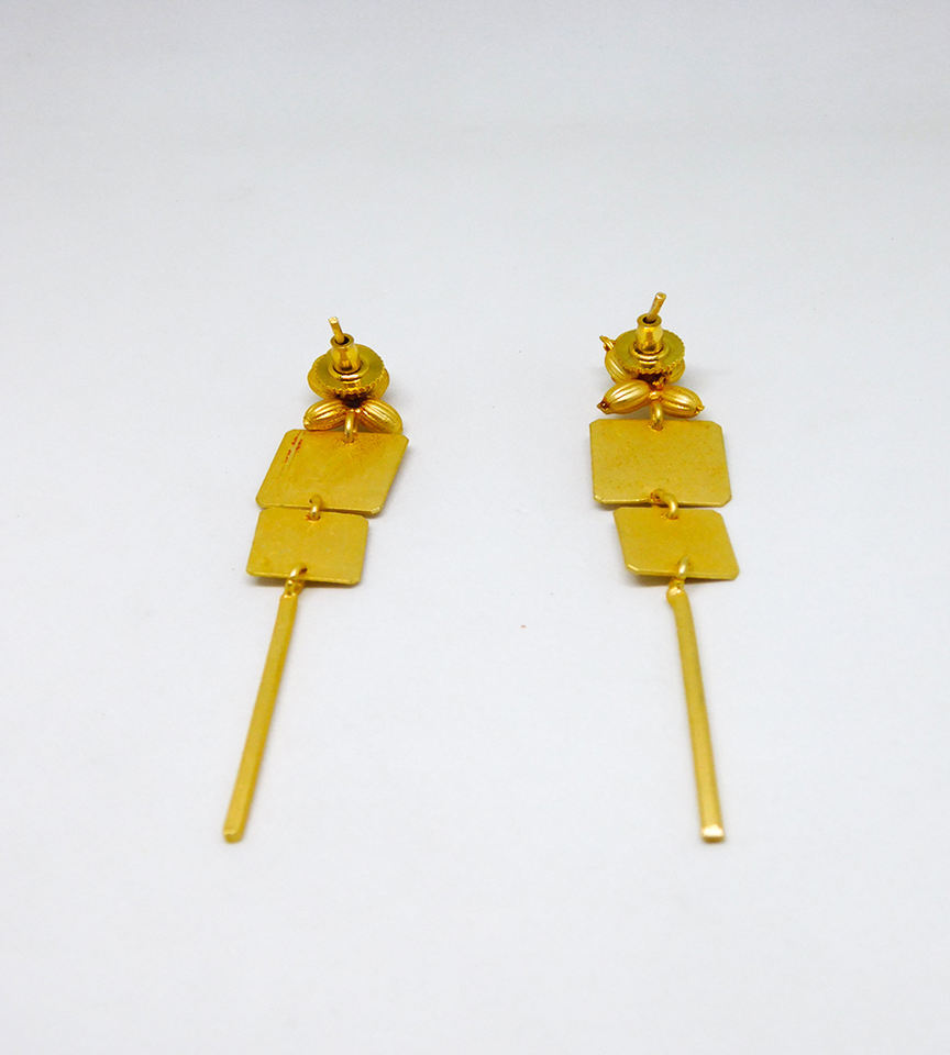 ต่างหูทองเหลืองชุบทองสำหรับผู้หญิงและหญิง,ต่างหูหมุดห่วงยาวทำมือผิวด้าน