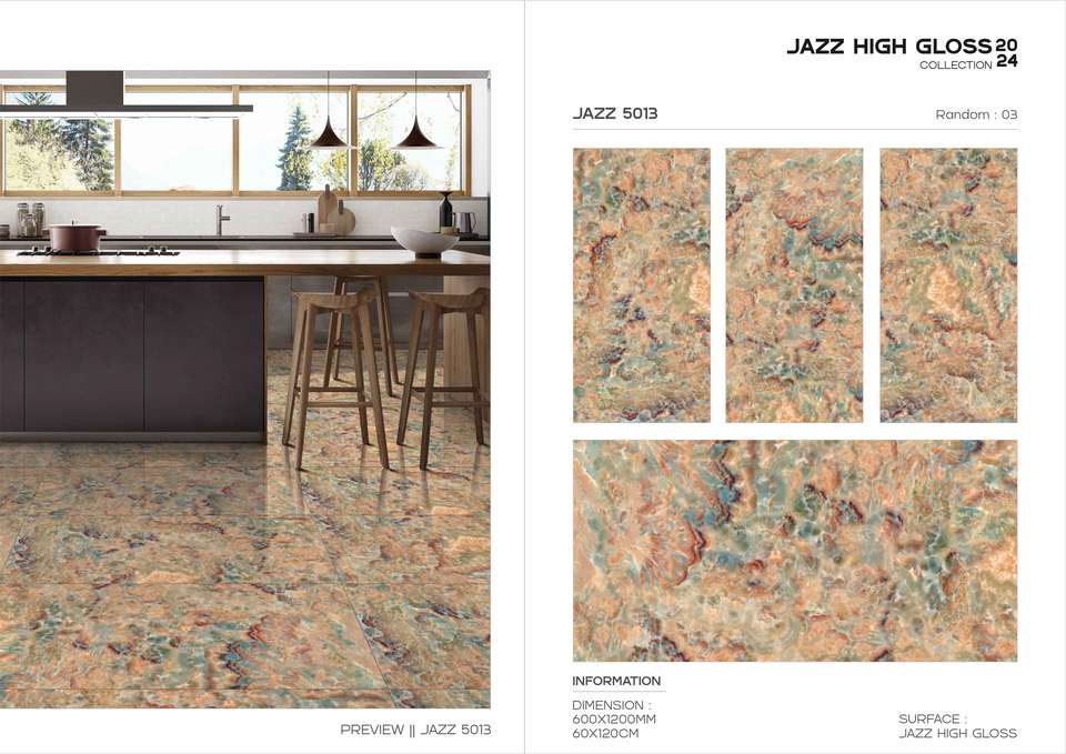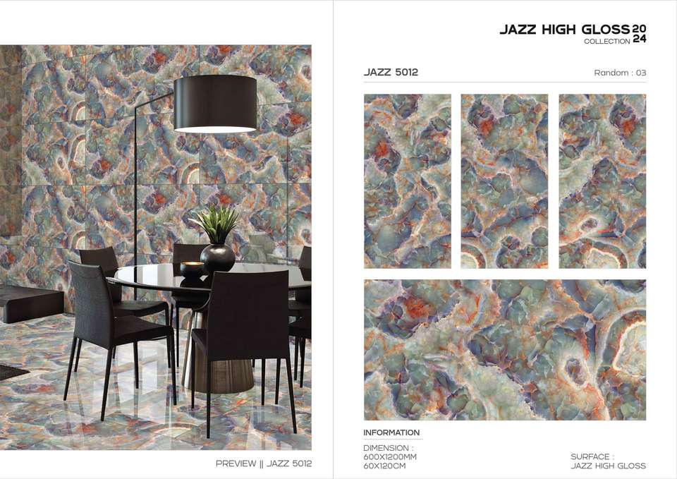 กระเบื้องพอร์ซเลนลายดีไซน์เนอร์ แจ๊ส ผิวเงาสูง ขนาด 60x120 ซม. 600x1200 มม. 24x48 นิ้ว สำหรับตกแต่งผนังและพื้นภายในอย่างมีสไตล์