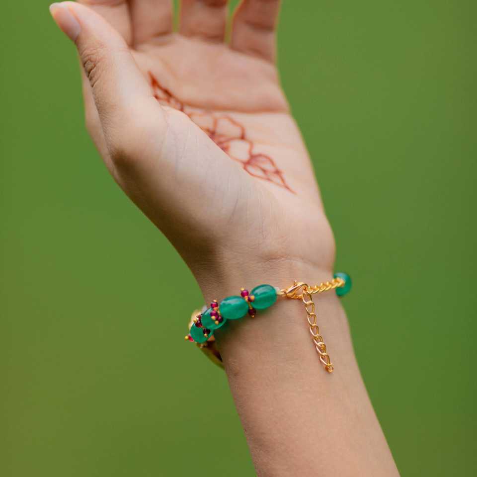 วัสดุ:เงินผสมทอง22K ลูกปัดหินหยกนาฬิกาควอทซ์