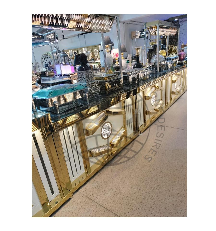 จอแสดงผลตกแต่งงานแต่งงานชุดโต๊ะเหล็กงานแต่งงานบุฟเฟ่ต์เหล็กแสดงการนําเสนอ